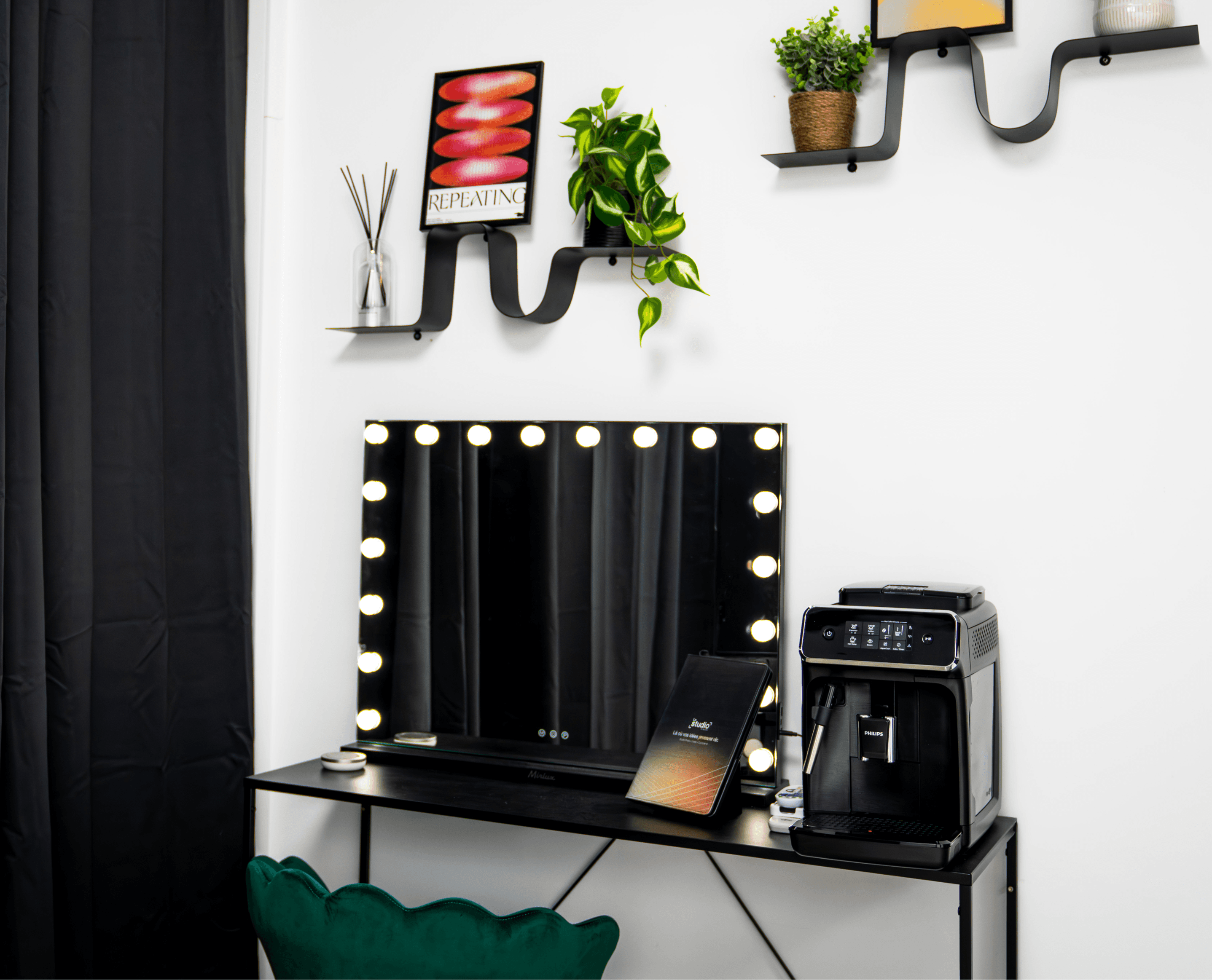 Pensé pour accueillir vos talents dans les meilleures conditions, l’espace Makeup & Préparation offre tout le nécessaire pour se préparer avant le tournage ou le shooting : lumière adaptée, mobilier fonctionnel et accès direct au plateau. Des sanitaires, une douche et des espaces pour se changer assurent confort et fluidité durant toute la production.